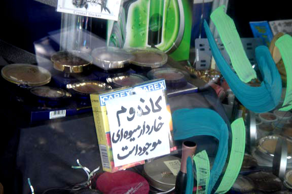 به مناسبت روز مادر و روز زن ٬ یکی از مغازهداران تهرانی بر روی ویترین مغازهاش تبلیغ جالبی کرده است: کاندوم خاردار میوهای!!