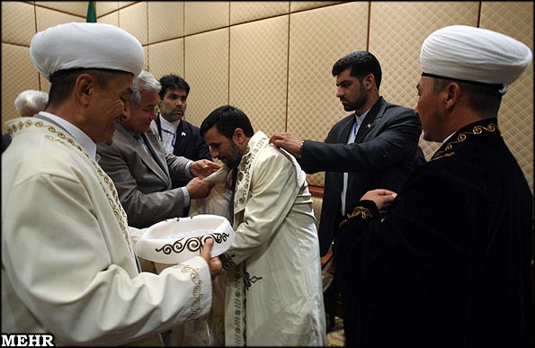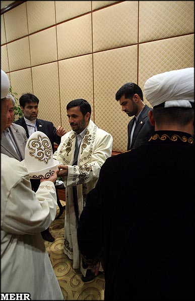 دکتر محمود احمدی نژاد رئیس جمهور کشورمان پس از ورود به بیشکک پایتخت قرقیزستان با رئیس کمیته دولتی ادیان و شورای علمای قرقیزستان دیدار و گفتگو کرد.