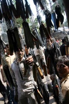تیغ های متصل به زنجیر آماده فروش جهت استفاده در عاشورا , بمبئی - هندوستان