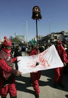 صحنه ایی از کشته شدن امام حسین , در مراسم سالیانه عاشورا