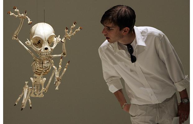 نگاه یک بازدید کننده به اسکلت طنز تام از کارتون تام و جری ساخته شده توسط Hyungkoo Lee هنرمند کره جنوبی که در نمایشگاه انیمیشن موزه تاریخ طبیعی بازل سوئد به نمایش در آمد.