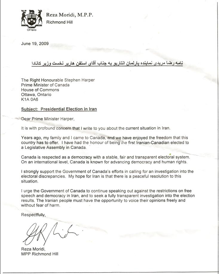به همراه نخست وزیر انتاریو و نماینده ایرانی الاصل پارلمان