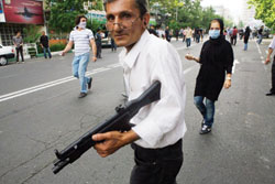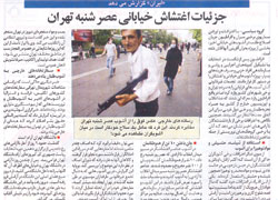 اعتماد: در روزهای گذشته برخی روزنامه ها و سایت های تندرو تلاش زیادی کرده اند تا بر خلاف اظهارات مسوولان قضایی و پلیس، با چاپ عکس ها و تصاویری این گونه القا کنند که معترضان با اسلحه در مقابل نیروهای انتظامی قرار گرفته اند. روزنامه ... روز گذشته با چاپ عکسی از فردی که ظاهراً یک سلاح در دست دارد و انتخاب تیتر «این تروریست های حامی صداقت» این رویه را ادامه داده و در ابتدای گزارش خود، سعی در مرتبط جلوه دادن آن با طرفداران میرحسین موسوی داشت. در ابتدای گزارش مذکور آمده است؛ حامیان افراطی میرحسین موسوی که در کنار آنها عناصر گروهک های تروریستی و اراذل و اوباش مشاهده می شدند که به اموال عمومی خسارت وارد می کردند به تخریب و غارت مغازه ها، آتش زدن خودروهای مردم و بانک ها و حمله به عابران مبادرت کردند. در نتیجه اغتشاشات شنبه شب تهران تعدادی از عناصر تروریست با استفاده از سلاح گرم، 10 نفر را کشته و 100 نفر را مجروح و مصدوم کردند.