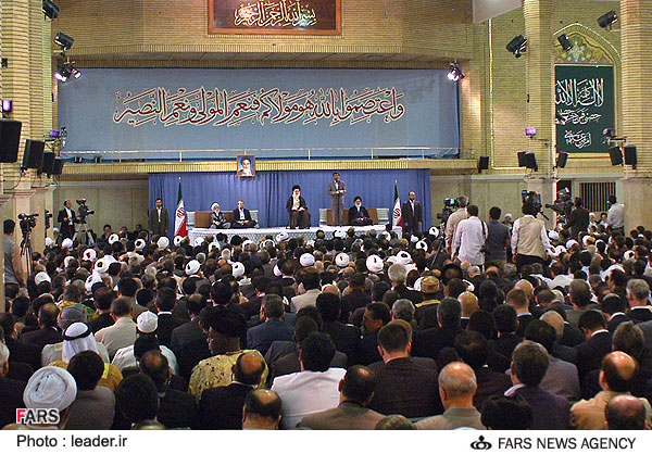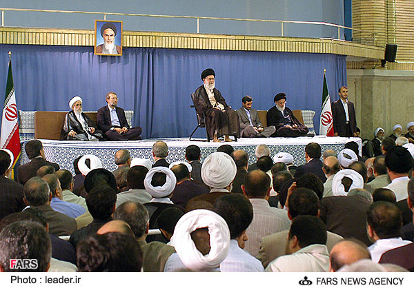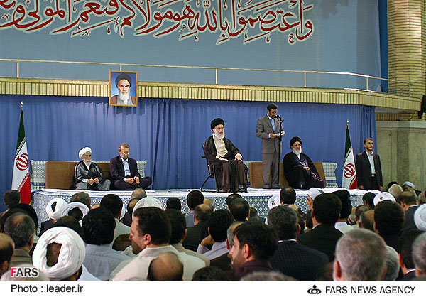 به نظر من این خود خامنه ایی نیست.عکسهای قبلیش رو مقایسه کنید. من فایل صوتی مراسم رو هم گوش کردم.واقعا شک برانگیزه |