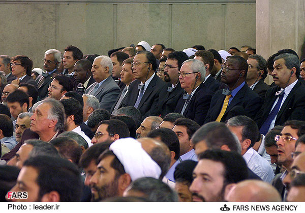 به این نکته توجه کنید که سفرا روی صندلی نشستن ولی خل و چل های حکومت روی زمین.ای خاک بر سرتون. جون من بادی گاردا رو حال میکنید یا نه؟ |