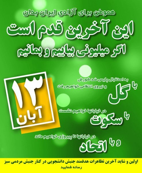 پوسترهای فراخوان تظاهرات جنبش سبز برای روز 13 آبان 2