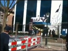 ویدئو کوتاهی از این اقدام در سایت یوتیوب منتشر شده است که نشان می دهد مخالفان با ورود به محوطه بیرونی ساختمان سفارت ایران، بر سردر ورودی آن مستقر می شوند و همراه با برافراشتن پلاکاردی که روی آن نوشته شده "آزادی" شعارهایی سر می دهند.