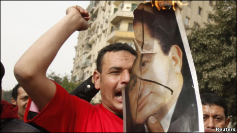 در خود قاهره هم در میدان تحریر، علی رغم این که تانک ها و نفربرهای ارتش در تمامی ورودی های میدان مستقر هستند، مردم همچنان در میدان جمع شده اند. مردم تغییر هیات دولت را که وعده داده شده کافی نمی دانند و خواستار تغییر حکومت و رفتن حسنی مبارک هستند که سی سال رییس جمهور بوده است.