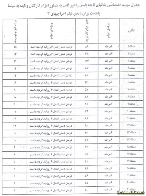 جدول سهمیه اختصاصی یگان های تابعه پلیس راهور به منظور اعزام کارکنان وظیفه به سینما برای دیدن فیلم اخراجی های 3 را در ذیل ببینید.