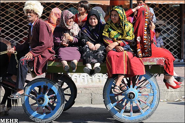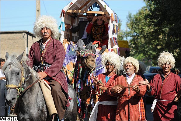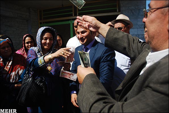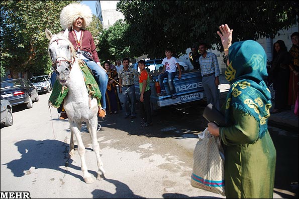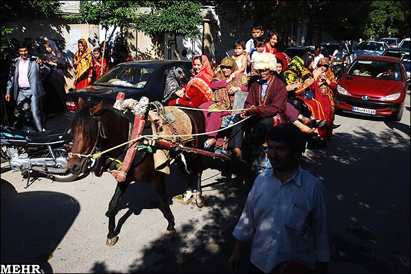 با سلام عروسی ترکمنها بسیار باشکوه برگزار میشه. خود ترکمنها مخصوصا ترکمنهای ایران فرهنگشونه تا حدود زیادی حفظ کردن.باوجود سرکوب بیش از 30سال رژیم اخوندی و ولایت قبیح وکارهای بسیار فاشیستی رژیم اخوندی ازجمله کوچاندن اقوام غیر ترکمن مثل زابلی ها،کوچاندن اقلیت سرابی واذری به داخل شهر گنبدو....ومعتاد کردن جوانان ترکمن به هرویین اوایل دهه 60.سرکوب قیام مردم ترکمن صحرا سال 58توسط اخوند خمینی واخوند خلخالی،تانک کشی وکشتن مردم ترکمن صحرا توشط پاسداران مزدور وکمیته ایها اذرماه سال 1358 .کشتن رهبران ترکمن صحرا دی ماه 1358،عدم استخدام ترکمنها در دوایر دولتیشان،جلوگیری وممانعت از تشکیل استان ترکمن وتشکیل استان کذایی گلستان به جای آن وممانعت از مرکز شدن گنبدکاووس به عنوان مرکز استان گلستان کذاییشان وبردن ان به شهر گرگان ،تقسیم ترکمن صحرا به شکل عجیب وغریب،تقلب وسیع در انتخابات مجلس فرمایشی شان ،وهزاران مکر ونیرنگ که بر سر مردم ترکمن صحرا در این 30سال در اوردند ولی باوجود این همه خیانتها هنوز در شگرفم که این ملت فرهنگشونو حفظ کردن .محمد رضا شاه شرف داره به این دزدان سگ. |