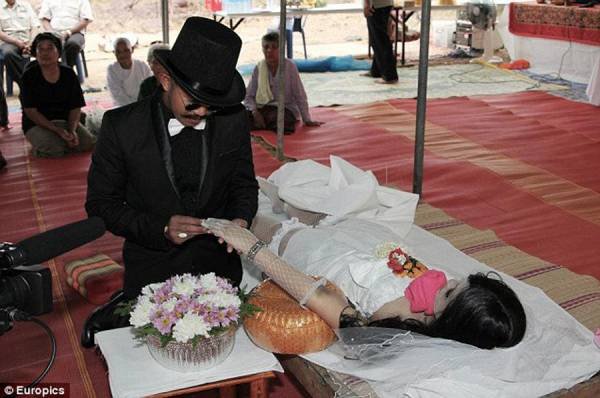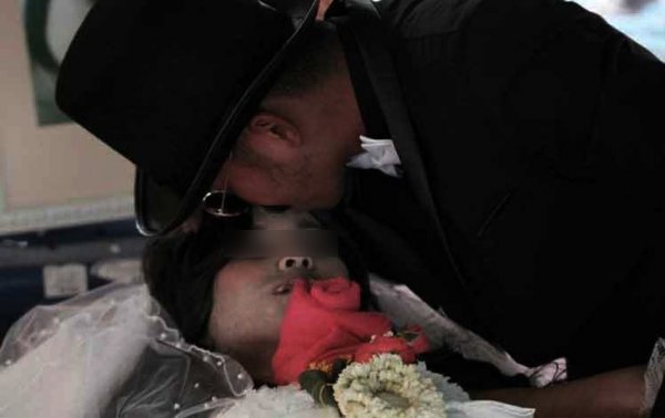 در این مراسم چادیل ۲۸ ساله با جسد نامزدش «سارینا کامسوک» که وی قبل از مرگ ۲۹ سال داشت ازدواج کرد.
