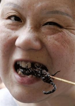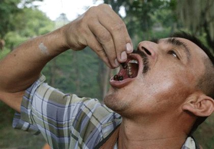 درسته که کله پاچه و سیراب شیردون ما ایرانیها هم برای خارجیها چندش آور است ولی من همیشه به آنها میگویم شما هم سر خوک یا سیرابی گوساله را میخورید در ضمن این گوشت گوسفند و گوساله و خوک در سبد غذایی اکثر کشورها وجود دارد ولی برای مثال در کلمبیا خوردن گوشت گورکن یا opossum (دوستانی که در آمریکا هستند با این حیوان آشنایی دارند) یا نوعی مورچه که شبیه عکس بالاست از فرهنگ بومیان آمریکائی جنوبی و به صورت تفننی متداول است و فقط بعضیها را من دیده ام که از این حیوانات استفاده میکنند ولی خوردن موش یا آلت تناسلی سگ یا ترشی بچه موش و.. در فرهنگ اقوام مختلف به ویژه چین از قدیم رایج بوده است و فکر میکنند خوردن این غذاها مانع از بیماری یا نیروزا هستند و معمولا مبالغ بالایی هم برای آنها میپردازند.