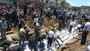 بیشتر آنها ادعا کردند که ارتش و شبه نظامیان "شبیحه" آن فجایع را انجام دادند هرچند حکومت سوریه اصرار دارد که حمله کار "تروریست های مسلح" بوده است.