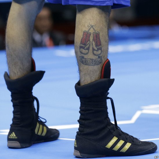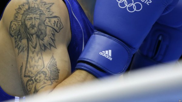خالکوبی واسیلی بلوس، نماینده مولداوی در مسابقات المپیک لندن، در زمان مبارزهاش با نماینده اوکراین در مسابقات بوکس سبک وزن در معرض دید بود.