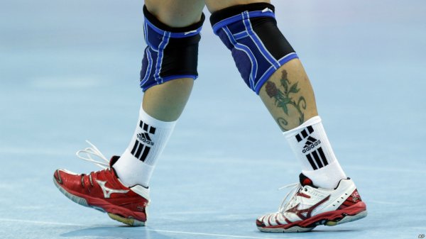 میراندا تاتاری، عضو تیم هندبال کرواسی، در ساق پایش خالکوبی یک ساقه گل را دارد.