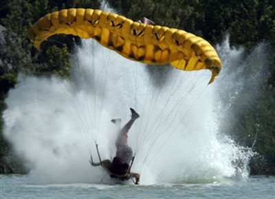 فرود یک چترباز به درون دریاچه "بالاتون" در مرکز مجارستان