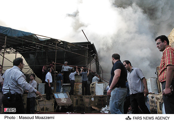 تصاویر آتش سوزی بازار لوازم خانگی سه راه امین حضور