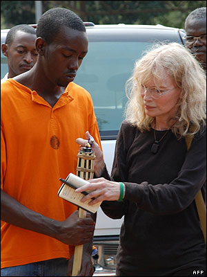 میا فارو، هنرپیشه و فعال آمریکایی در مراسم روشن کردن مشعل در دارفور. بانیان این مراسم خواهان فشار دولت چین، میزبان المپیک 2008 بر سودان برای پایان دادن به رنج مردم دارفور هستند