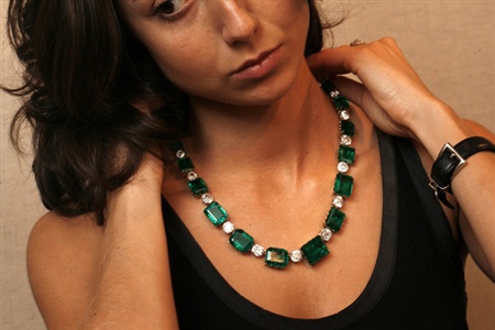 یک گردنبند با سنگهائی از زمرد سبز (عتیقه ) والماس از کریستی که پیش بینی فروشی بین ۸۷۳۳۱ تا ۱۳۱۰۱۶ دلار را در ۱۵ نوامبر خواهد داشت.