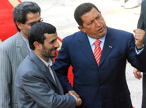 هوگو چاوز در کنفرانس خبری با احمدینژاد رئیس جمهور ایران با مزاح و خنده گفت: رسانههای امپریالیستی میگویند من در سفر به ایران به دنبال اتم آمدهام بله الان اتم اینجا و در جیب من است و اگر آنها در مسیرم باشند پرتش میکنم!