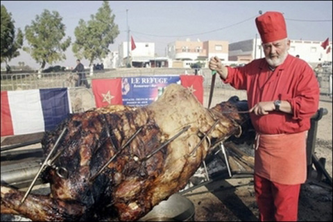 بزرگترین کباب دنیا - کباب یه شتر 550 کیلویی که 15 ساعت داشته روی آتش ملایم بریان می شده البته درمراکش
