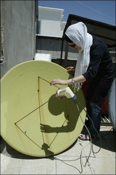 این هم یه خانوم که داره دیش ماهواره اش رو میزون میکنه جای نیروی انتظامی خالی . خدا بده از این اراذل و اوباش ظریف و مونث