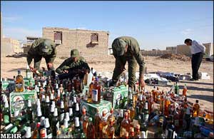 2200 بطری از مشروبات الکلی مشکوفه توسط نیروی انتظامی صبح امروز در اهواز نابود شد.