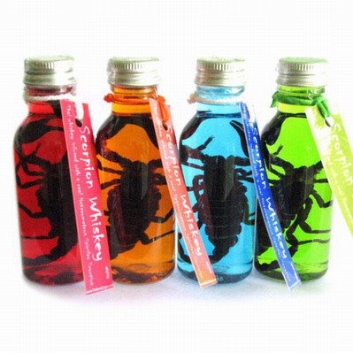 این چیزها فقط برای ما ایرانیها عجیب است وگرنه خوردنش از نظر بهداشتی هیچ مشکلی نداره . اول تست میشه بعد اجازه تولید و ورود به بازار را میگیره . ویسکی عقرب ولی خوردن داره.. |