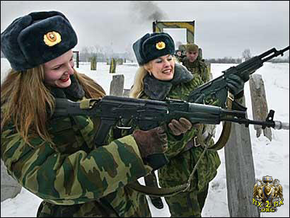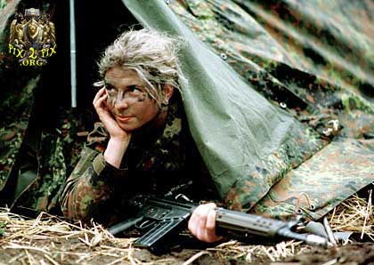 به نظرم لازمه که هم آقایون و هم خانم ها به سربازی بروند. ولی تو ایران همون بهتر که خانم ها به سربازی نرن چون پاشون تو چادرشون موقع دویدن گیر می کنه و با سر به زمین میرن!!!! |