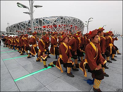 برگزار گنندگان المپیک پکن، کمتر از یک هفته مانده به آغاز بزرگترین رویداد ورزشی چهار سال اخیر جهان، برای دومین بار بطور تمرینی مراسم افتتاحیه را برگزار گردند.