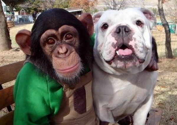آخی حیونکی ها!!! چقدر قشنگ بودن! مخصوصاْ اون عکسی که میمونه با سگه با هم نشستند! آدمو یاد احمدی نژاد و رفسنجانی میندازن! چه شباهتی دارن! |