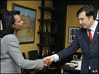 خانم رایس روز گذشته (جمعه ۱۵ اوت) در تفلیس پایتخت گرجستان با میخائیل ساکاشویلی رئیس جمهور این کشور دیدار و گفتگو کرد.