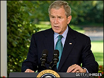 رئیس جمهور آمریکا در بیانیه رادیویی هفتگی خود گفت که جهان با نگرانی نظاره‌گر تهاجم و تهدید روسیه به تمامیت ارضی کشور همسایه اش گرجستان و دولت دمکراتیکی است که توسط مردم انتخاب شده است.