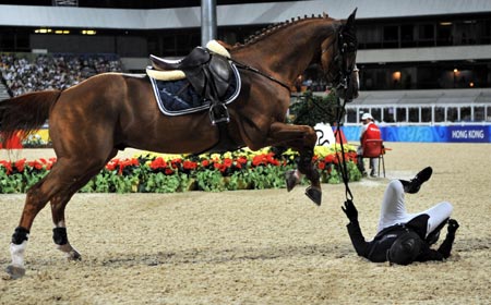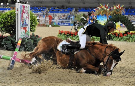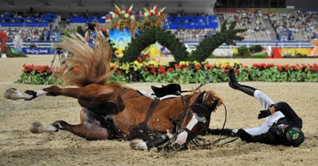 سقوط سوار کار آذربایجانی در مسابقه پرش از مانع المپیک