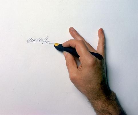 اون انگشت یعنی یک ماژیک یا خودکاره که داره باهاش مینویسه.