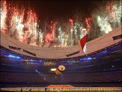 مراسم اختتامیه در استادیوم پر از جمعیت و 90 هزار نفری "آشیانه پرنده" انجام می شود، و در حین آن در 18 نقطه پکن آتش بازی برگزار می گردد.