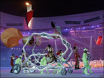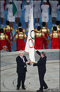 چین که در جدول مدال ها آمریکا را شکست داد و در صدر قرار گرفت، در مراسم افتتاحیه پرچم المپیک به نمایندگان بریتانیا، که میزبان المپیک 2012 هستند، داده شد.