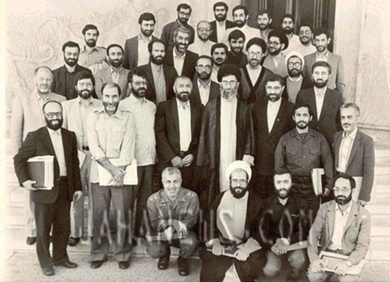 آیت الله خامنه‌ای (رییس جمهور وقت) و کابینۀ مهندس میر حسین موسوی