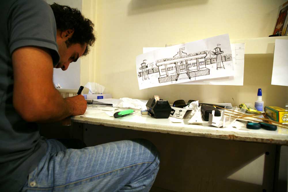 انتخاب لوکیشن اردوگاهی که باید ساخته شود.کیوان مقدم قرار است این اردوگاه را بر اساس نقشه تلفیقی برخی اردو گاههای تکریت و رمادیه بسازد. قذم اول ماکت سازی است.