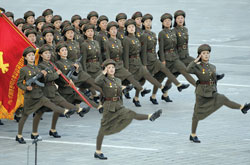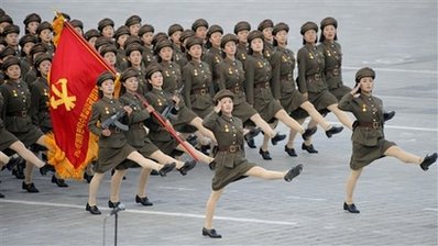 عکس بالا , عکس روزنامه اعتماد هست که از رژه ارتش کره شمالی چاپ کرده با یه خبر در مورد همون کشور و خواسته با فتوشاپ زور زورکی شلوار پای افسرهای زن کره شمالی کنه .