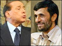 سیلویو برلوسکونی نخست وزیر ایتالیا روز سه شنبه به یک سازمان یهودی در پاریس گفته بود: "فکر می کنم باید به رفتار جنون آمیز کسی که، شاید برای کاربردهای داخلی، می گوید اسرائیل باید از نقشه محو شود، کاملا توجه کنیم."