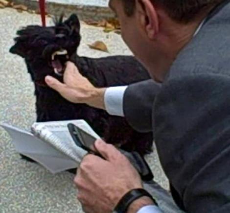 سگ بوش پسر، «بارنی» با حمله به یک خبرنگار انگشت شست او را گاز گرفت و به شدت او را مجروح کرد.