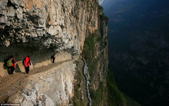 این راه خطرناک برای رفت و آمد به مدرسه در دهکده Gulucan در غرب چین واقع است. ارتفاع قسمتی از این مسیر خطرناک تا کف دره به ۵۰۰۰ فوت می رسد!