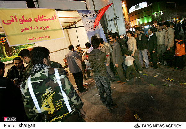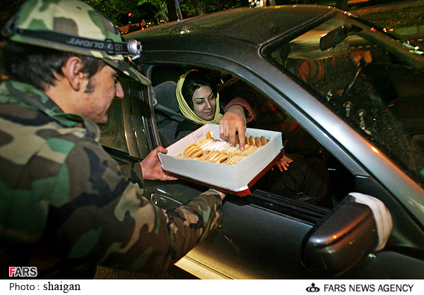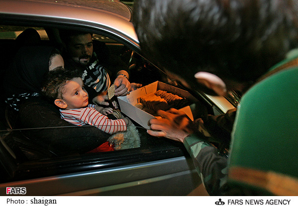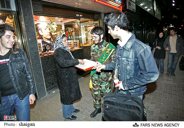 توزیع شیرینی در گشتهای ایست و بازرسی بسیج در سطح شهر