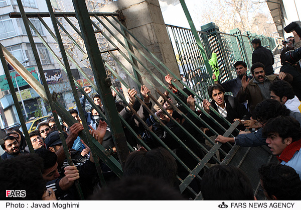 خبرگزاری حکومتی فارس به تظاهرات ضدحکومتی دانشجویان دانشگاه تهران بهمناسبت روز دانشجو اعتراف کرد و نوشت: تعدادی از تجمعکنندگان دانشگاه تهران، در ادامه حرکتهای افراطی خود با پرتاب سنگ به برخی اعضای حراست دانشگاه تهران حملهور شدند. دانشجویان با یورش به سمت اتاق حراست در پورسینای دانشگاه تهران، شیشههای این اتاق را شکسته و به سمت ماموران حراست سنگ پرتاب کردند. در میان تجمع کنندگان، دانشجویان افراطی برخی دانشگاهها از جمله دانشگاه پلیتکنیک، علامه طباطبایی و خواجه نصیر طوسی به چشم میخوردند و تجمعکنندگان را بهسر دادن شعارهایی علیه نظام تحریک میکردند. |