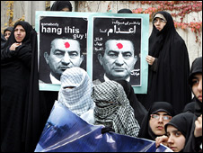 این افراد که تصاویری از حسنی مبارک، رئیس جمهوری مصر، را در دست داشتند علیه او شعارهای تند سر دادند و پرچم اسرائیل را به آتش کشیدند.