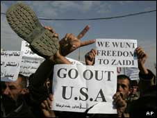 هزاران عراقی در بغداد دست به تظاهرات زده و خواستار آزادی منتظر الزیدی، یک خبرنگار عراقی شدند که روز گذشته در یک کنفرانس خبری هر دو کفش خود را به طرف جورج بوش، رییس جمهوری آمریکا، پرتاب کرده بود.