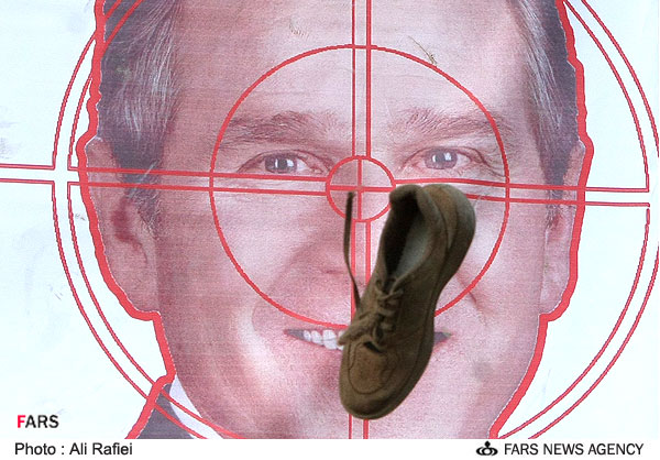 خدارا شکر که در مملکتی که کسی جرات نمی کرد برخلاف صدام حرفی بزند یک انسان عوام میتواند در جلسه رئیس جمهور دومملکت بدون دغدغه کفش بپراند !!! این به ما ثابت کرد دموکراسی در عراق توسط یالات متحده ایجاد شده است در ضمن آیا کسی میتواند روبروی آقای خامنه ای این کاررا بکند !!! |