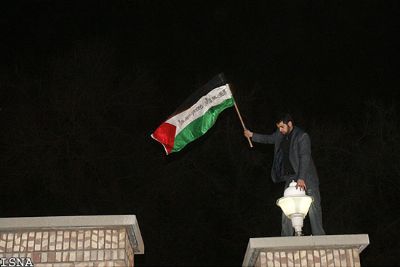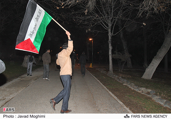سوتی پرچم فلطسین در دست دانشجویان بسیجی در باغ قلهک