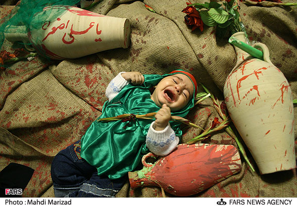 تنها چیزی که میشه گفت اینه: خاک بر سر اون پدر و مادر که بچه اش را کفن میپوشونه و برای یادبود عربی که 1400 سال پیش به درک واصل شد به نمایش میذاره.. چرا این ملت اینجوری شد؟ دنیا برای بجه هاشون 1001 برنامه میذارن کلاس موسیقی کلاس نقاشی سوارکاری... افسوس افسوس که ایران داره روز به روز عقبتر از دنیا میره. آذربایجان و ترکیه که شما قبول ندارید و مسخره می کنید خیلی از ایران جلوترند. خیلی. ما فقط قرور و افتخار علکی داریم.همین باعث کور بودن ما شده. حکایت از 2500 سال پیش میکنیم و قافل از احوال کنونیمان هستیم. فقط در گذشته زندگی میکنیم. تاریخمان را هم همین غربی ها کشف کردن. نفت را هم انگلیسی ها.